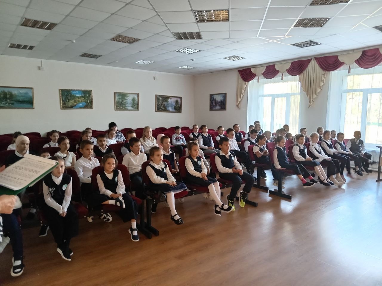 29 сентября, утро понедельника в нашей школе традиционно началось с торжественной линейки, церемонии поднятия флага и исполнения гимна Российской Федерации.