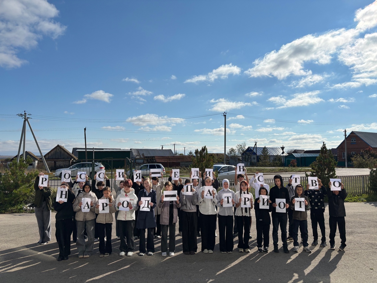 Почетное право поднять флаг РФ было предоставлено коллективу «Импульс». учащимся 4 класса, которые заняли I место в Международном фестивале — конкурсе народного песенно-танцевального искусства «Казан сөлгесе».